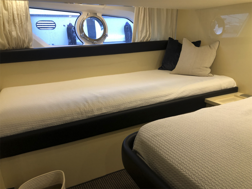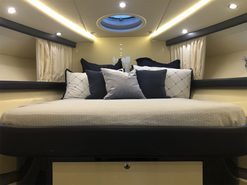 ビルダー:Cantieri Di SARNICO|年式:2016年|登録:2022年(2022年7月にエンジン大型整備、内外装リフィット作業実施)|全長:13.43m|全幅:4.1m|エンジン:Volvo Penta D6 IPS600 435Hp×2基|発電機7Kw|エンジン使用時間:約75(2025年8月時点)|燃料タンク:約1600lt|清水タンク:395lt