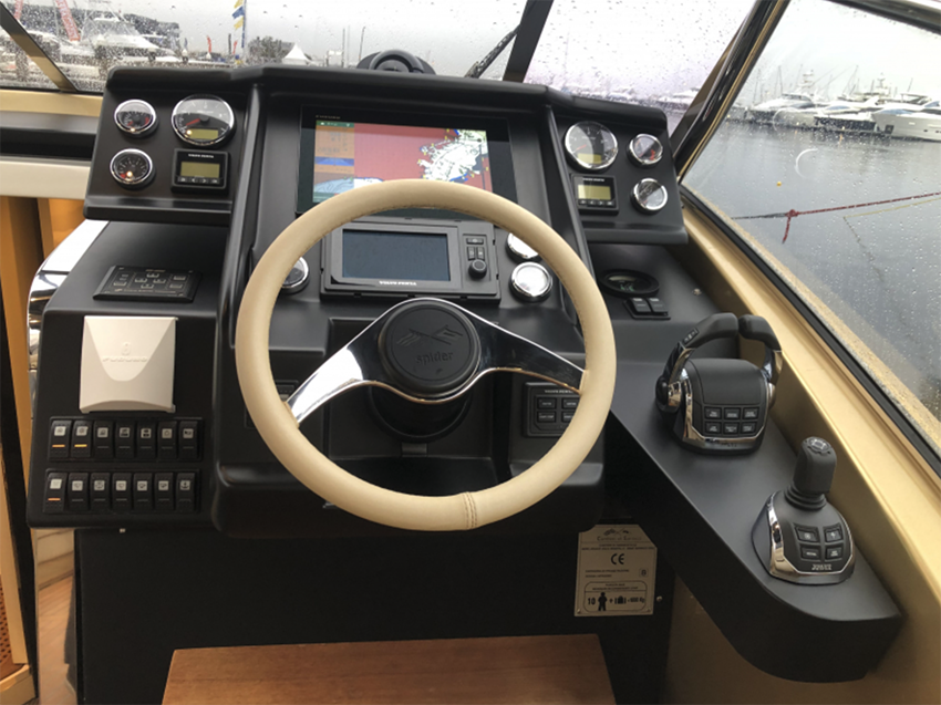 ハードTOP、オートパイロット、Furuno NavNet GPS、Joyスティック、Volvo DPSシステム、水深計、サーチライト、水中ライト、衛星アンテナ収納用ドーム、エアコン(ロアーデッキ及びメインデッキ)、エンクロージャー(フロント、サイド、リア)、アップグレード発電機 Mase IS7、コックピットギャレー、冷蔵庫(ロアーデッキ及びメインデッキ)、コックピット及びサロン兼用カーボンテーブル(収納式)、サンパッド(バウ)、オーディオ Fusion、法定備品、ほか