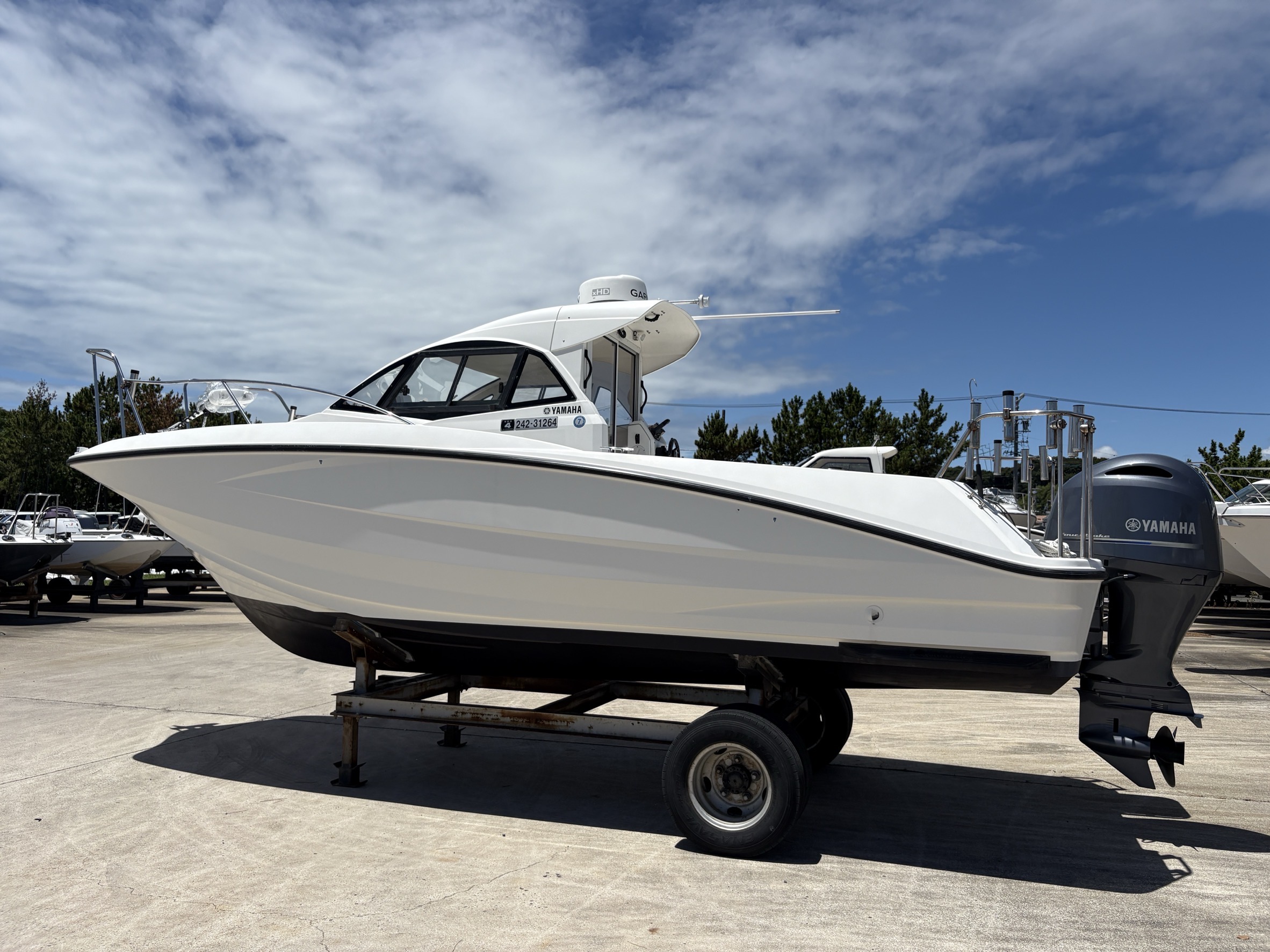 大変人気の高いフィッシャー艇YAMAHA YF24 O/B F200FSR(フィッシングサポートリモコン)が入荷しました!エンジンは高年式2023年。